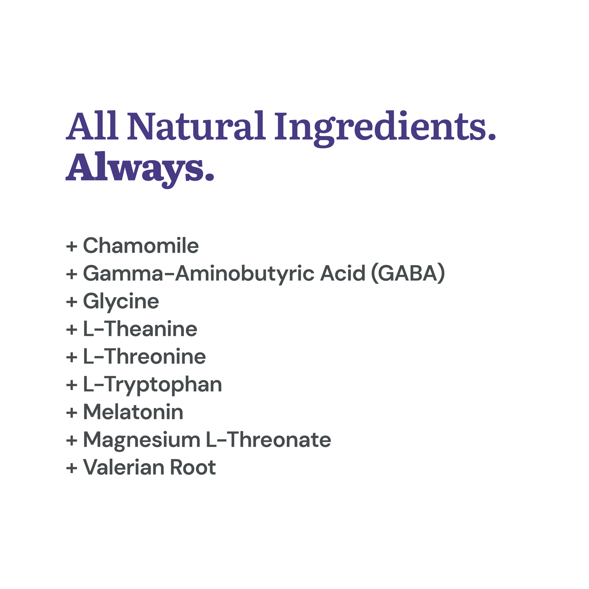 - L-threonine – Helps boost serotonin for mood and sleep balance